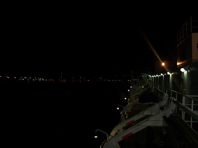 Messinasundet på väg till Sicilien, mörkt men vackert.